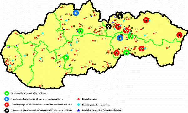 Pamiatkové rezervácie, pamiatkové zóny a svetové dedičstvo v SR (1997)